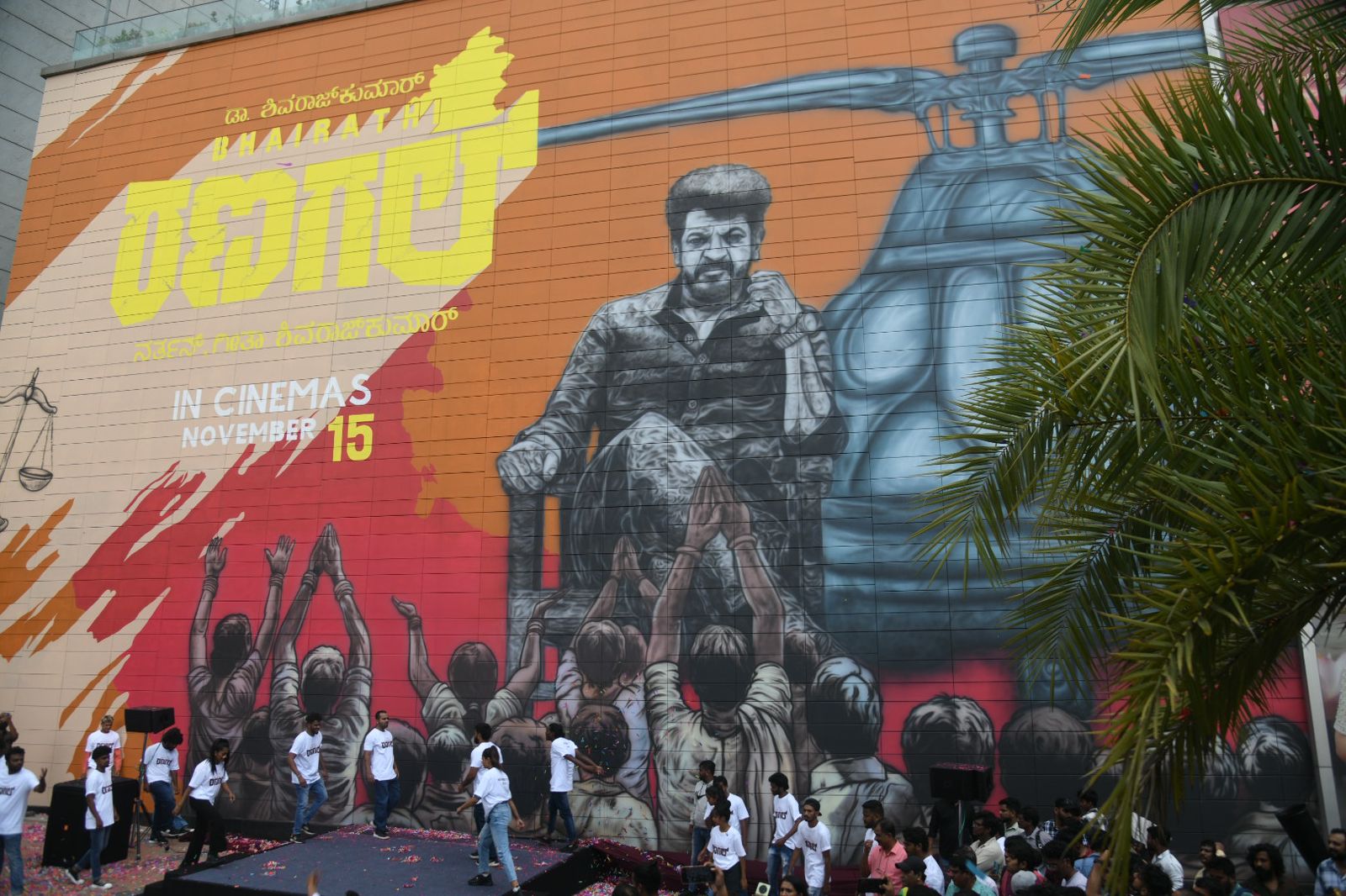 ಬೆಂಗಳೂರಿನ ಯಲಹಂಕದಲ್ಲಿರುವ ಗೆಲರಿಯಾ ಮಾಲ್ನಲ್ಲಿ ಇದೇ ಮೊದಲ ಬಾರಿಗೆ ವಿನೂತನವಾಗಿ ನಿರ್ಮಿಸಲಾಗಿದ್ದ ಅತೀ ದೊಡ್ಡ graffiti art ಅನ್ನು ಅನಾವರಣಗೊಳಿಸುವ ಮೂಲಕ “ಭೈರತಿ ರಣಗಲ್” ಚಿತ್ರದ ಬಿಡುಗಡೆ ದಿನಾಂಕವನ್ನು ಘೋಷಣೆ ಮಾಡಲಾಯಿತು. ನಿರ್ಮಾಪಕಿ ಗೀತಾ ಶಿವರಾಜಕುಮಾರ್, ನಿರ್ದೇಶಕ ನರ್ತನ್ ಹಾಗೂ ನಿವೇದಿತಾ ಶಿವರಾಜಕುಮಾರ್ ಈ ಸಂದರ್ಭದಲ್ಲಿ ಉಪಸ್ಥಿತರಿದ್ದರು. ಸಹಸ್ರಾರು ಅಭಿಮಾನಿಗಳು ಈ ಸುಂದರ ಸಮಾರಂಭಕ್ಕೆ ಸಾಕ್ಷಿಯಾದರು. graffiti art ನಲ್ಲಿ ಮೂಡಿಬಂದ ಶಿವರಾಜಕುಮಾರ್ ಅವರ ಲುಕ್ ಗೆ ಅಭಿಮಾನಿಗಳು ಫಿದಾ ಆದರು.