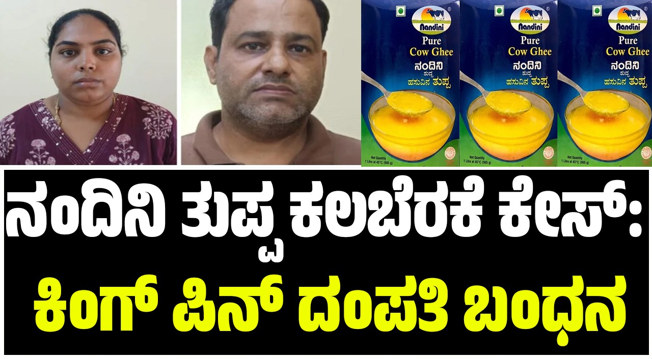 ಇತ್ತಿಚೆಗೆ ನಕಲಿ ನಂದಿನಿ ತುಪ್ಪ ತಯಾರಿ ಘಟಕದ ಮೇಲೆ ಸಿಸಿಬಿ ಪೊಲೀಸರ ದಾಳಿ ನಡೆಸಿ ನಾಲ್ವರನ್ನ ಬಂಧಿಸಿ 1.26 ಕೋಟಿ ರೂ. ಮೌಲ್ಯದ ಕಲಬೆರೆಕೆ ತುಪ್ಪ ವಶಕ್ಕೆ ಪಡೆದಿದ್ದರು. ಬಳಿಕ ಪ್ರಕರಣದ ಪ್ರಮುಖ ಆರೋಪಿ ಶಿವಕುಮಾರ್ ಎಂಬುದು ತನಿಖೆಯಲ್ಲಿ ಗೊತ್ತಾಗಿತ್ತು. ಆದರೆ ನಾಲ್ವರ ಬಂಧನದ ಬಳಿಕ ಶಿವಕುಮಾರ್ ಪರಾರಿಯಾಗಿದ್ದ. ಸಿಸಿಬಿ ಪೊಲೀಸರು ನಿರಂತರ ಕಾರ್ಯಾಚರಣೆ ನಡೆಸಿ ಶಿವಕುಮಾರ್ ದಂಪತಿ ಬಂಧಿಸಿದ್ದಾರೆ.
