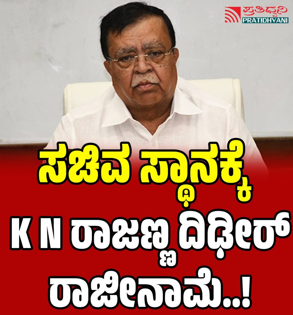 ರಾಜೀನಾಮೆ ಖಚಿತ ಪಡಿಸಿದ್ದ. ಸಹಕಾರಿ ಸಚಿವ ಕೆ ಎನ್ ರಾಜಣ್ಣ. ಸಿಎಂ ಸಿದ್ದರಾಮಯ್ಯ ಭೇಟಿ ಮಾಡಿ ವಿವರಣೆ ಕೊಡಲಿದ್ದಾರೆ