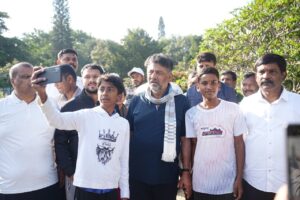 ಕಬ್ಬನ್ ಪಾರ್ಕ್ ನಲ್ಲಿ ಭಾನುವಾರ ನಡೆದ ಬೆಂಗಳೂರು ನಡಿಗೆ ಕಾರ್ಯಕ್ರಮದ ವೇಳೆ ಶಿವಕುಮಾರ್ ಅವರು ಸಾರ್ವಜನಿಕರ ಜೊತೆ ಮಾತನಾಡಿದರು.