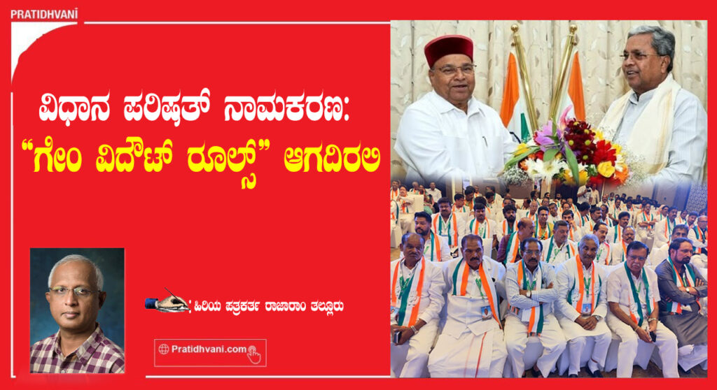ಸರ್ಕಾರ ತನ್ನ ಲಭ್ಯ ಕೆಟಗರಿಗಳಲ್ಲಿ ತನ್ನ ಕಾರ್ಯಕರ್ತರಿಗೆ ಅವಕಾಶ ಮಾಡಿಕೊಡಲಿ. ಆದರೆ, “ಪರಿಣತ” ನಾಮಕರಣ ಸೀಟುಗಳಿಗೂ ಕಾರ್ಯಕರ್ತರೇ ಬೇಕು ಎಂದು ಹೊರಡುವುದಕ್ಕೆ ಅರ್ಥ ಇಲ್ಲ. ಹೀಗೆ, ಅನಗತ್ಯವಾಗಿ ಏಳುವ ತಕರಾರುಗಳು ಮೇಲ್ಮನೆಯ “ಹಿರಿಯರ ಸದನ” ಎಂಬ ಗೌರವವನ್ನು ಕೆಡಿಸುವುದಷ್ಟೇ ಮಾಡುತ್ತದೆ ಹೊರತು ಬೇರೆ ಏನೂ ಮಾಡದು. ನಮ್ಮ ಮಾಧ್ಯಮಗಳೂ ಕೂಡ ನಿಯಮ ಗೊತ್ತಿಲ್ಲದವರಂತೆ, ಪಕ್ಷದ ಕಾರ್ಯಕರ್ತರನ್ನು ಪರಿಗಣಿಸಬಹುದಿತ್ತು ಎಂಬಿತ್ಯಾದಿ ನೆರೇಟಿವ್ಗಳಲ್ಲಿ ತೊಡಗಿಕೊಂಡಿರುವುದು ಅವರ ಅಜ್ಞಾನವನ್ನಷ್ಟೇ ತೋರಿಸುತ್ತದೆ. ಈ ಕುರಿತು ಸಾಮಾಜಿಕ ಜಾಲತಾಣದಲ್ಲಿ ಬರೆದುಕೊಂಡಿರುವ ಹಿರಿಯ ಪತ್ರಕರ್ತ ರಾಜಾರಾಂ ತಲ್ಲೂರು.