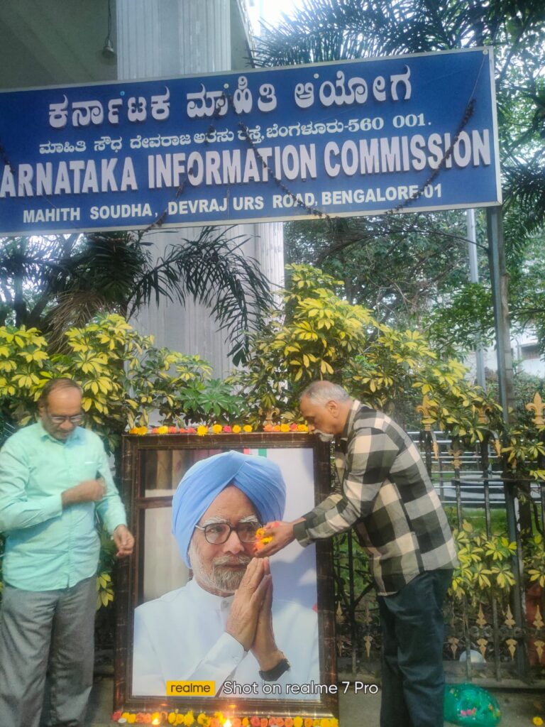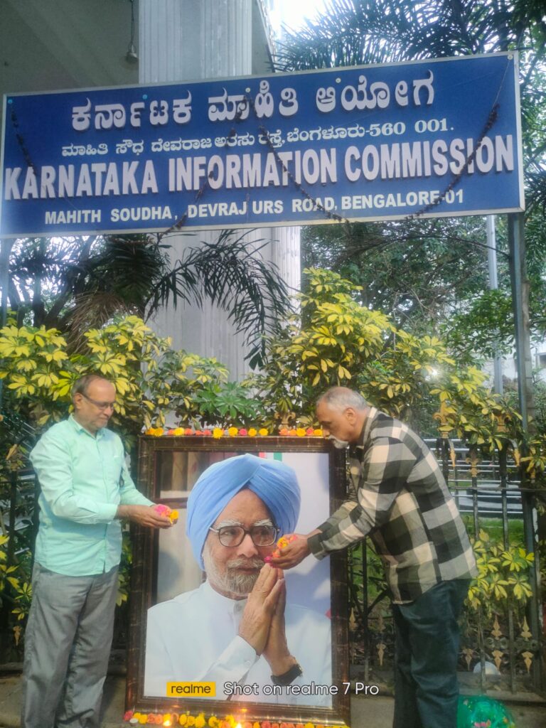 ಬೆಂಗಳೂರು: ದೇಶ ಕಂಡ ಅತ್ಯುತ್ತಮ ಆಡಳಿತಗಾರ, ಆರ್ಥಿಕ ತಜ್ಞ ಡಾಕ್ಟರ್ ಮನಮೋಹನ್ ಸಿಂಗ್ ಅವರು ವಿಧಿವಶರಾದ ಹಿನ್ನೆಲೆಯಲ್ಲಿ ಇಂದು ನೈಜ್ಯ ಹೋರಾಟಗಾರರ ವೇದಿಕೆ ಮತ್ತಿತರ ಸಂಘಟನೆಗಳು ಬೆಂಗಳೂರಿನಲ್ಲಿರುವ ಮಾಹಿತಿ ಆಯೋಗದ ಮುಂದೆ ಮಾಜಿ ಪ್ರಧಾನಿ ಮನಮೋಹನ್ ಸಿಂಗ್ ಅವರಿಗೆ ಭಾವಪೂರ್ಣ ಶ್ರದ್ಧಾಂಜಲಿಯನ್ನು ಅರ್ಪಿಸಿದರು.