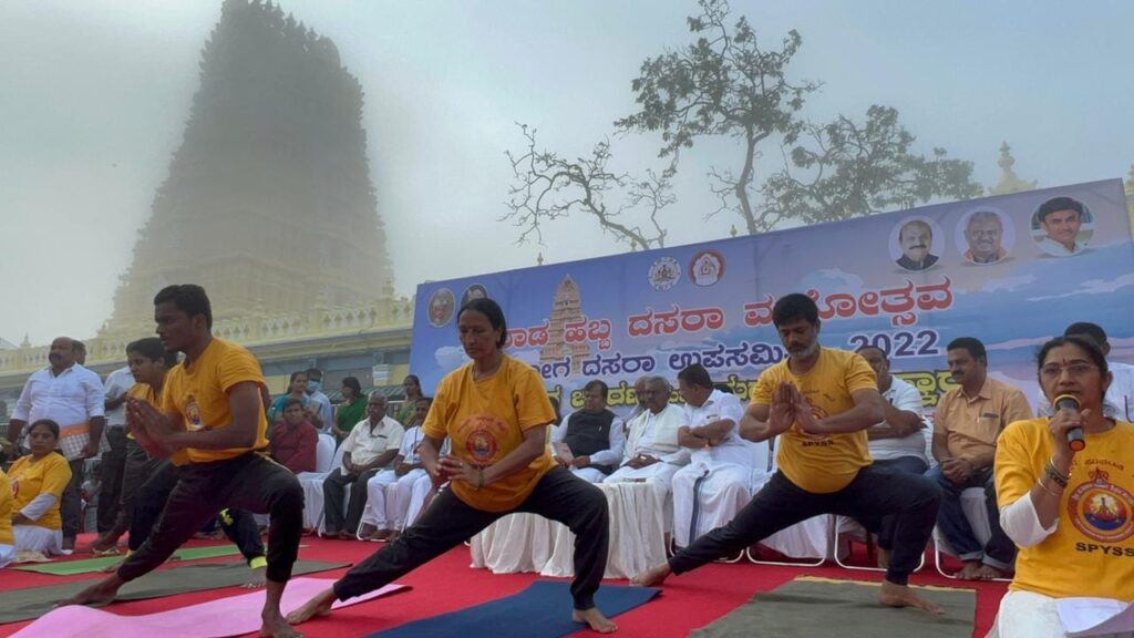 ಚಾಮುಂಡಿ ಬೆಟ್ಟದ ದೇವಸ್ಥಾನದ ಆವರಣದಲ್ಲಿ ಶ್ರೀ ಪತಂಜಲಿ ಯೋಗ ಶಿಕ್ಷಣ ಸಮಿತಿ (ಎಸ್ ಪಿವೈಎಸ್ ಎಸ್) ವತಿಯಿಂದ ಹಮ್ಮಿಕೊಂಡಿದ್ದ ಯೋಗ ಚಾರಣ ಮತ್ತು ದುರ್ಗನಮಸ್ಕಾರ ಕಾರ್ಯಕ್ರಮವನ್ನು ಉದ್ಘಾಟನೆ ಮಾಡಿ ಮಾತನಾಡಿದ ಅವರು, ಯೋಗ ದಸರಾ ಸೇರಿದಂತೆ ಬಹುತೇಕ ಎಲ್ಲಾ ದಸರಾ ಕಾರ್ಯಕ್ರಮಗಳನ್ನು ಬಹಳ ವ್ಯವಸ್ಥಿತವಾಗಿ ಆಯೋಜಿಸಲಾಗಿದೆ. ಸಾವಿರ ಮೆಟ್ಟಿಲು ಹತ್ತಿ ಬಂದು ಯೋಗ ಮಾಡಿದ್ದಾರೆ. ಸೆ.26ರಿಂದ ಅ.3ರವರೆಗೆ ನಿತ್ಯ ಯೋಗಾಸನ ಕಾರ್ಯಕ್ರಮ ಆಯೋಜಿಸಲಾಗಿದೆ ಎಂದರು.