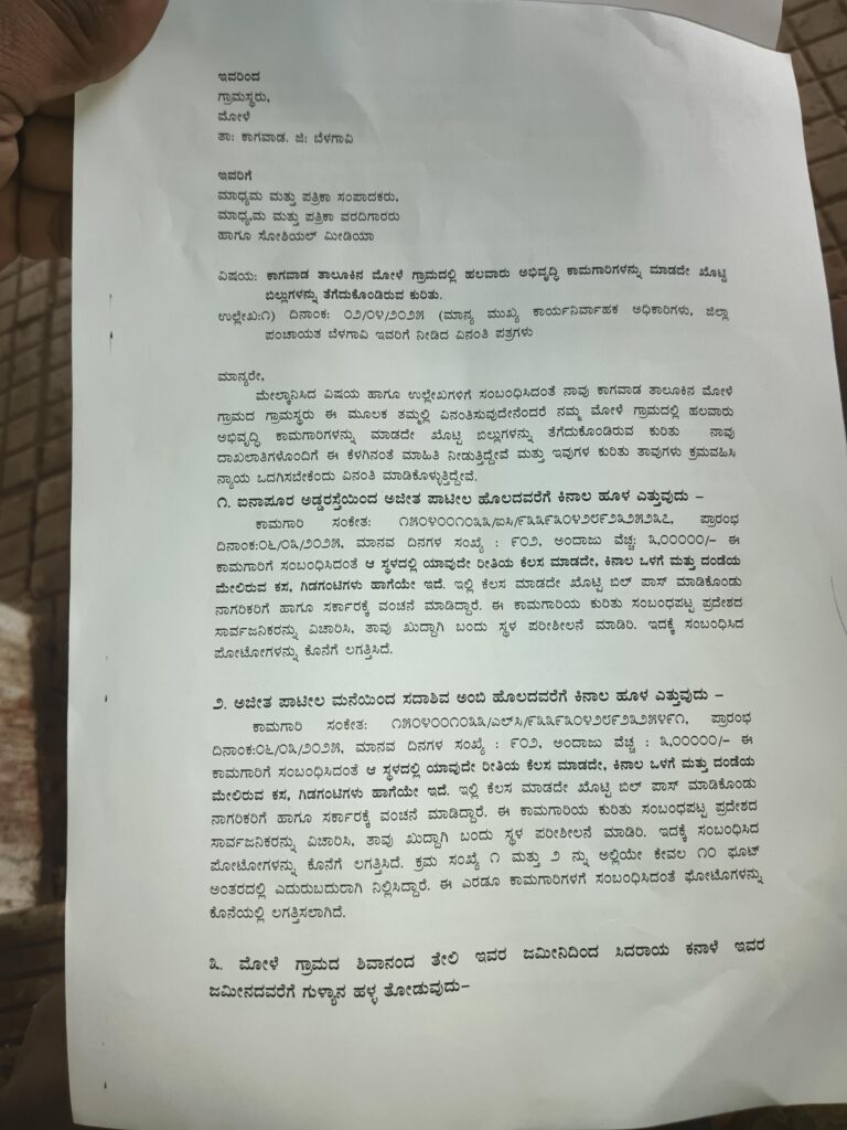 ಮೋಳೆ ಗ್ರಾಮದಲ್ಲಿ ಹಲವಾರು ಅಭಿವೃದ್ಧಿ ಹೆಸರಿನಲ್ಲಿ ಬಿಲ್ಲುಗಳನ್ನು ತೆಗೆದಿರುತ್ತಾರೆ ಇಲ್ಲಿ ಯಾವುದೇ ರೀತಿ ಸರಿಯಾದ ಕೆಲಸವಾಗಿಲ್ಲ ಸರ್ಕಾರ ಕಣ್ಣು ತೆಗೆದು ನೋಡಬೇಕಾದ ವಿಷಯವಿದೆ ಖಾತ್ರಿ ಯೋಜನೆ ಇದ್ದಿದ್ದು ಕತ್ರಿ ಯೋಜನೆಯಾಗಿದೆ ಎಂದು ಆಕ್ರೋಶ ವ್ಯಕ್ತಪಡಿಸಿದರು