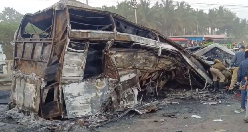ಬೆಂಗಳೂರಿನಿಂದ ಗೋಕರ್ಣಕ್ಕೆ ತೆರಳುತ್ತಿದ್ದ ಖಾಸಗಿ ಬಸ್ ಸೀಬರ್ಡ್ ಸ್ಲೀಪರ್ ಕೋಚ್ ಬಸ್ಗೆ, ಎದುರಿನಿಂದ ಬರುತ್ತಿದ್ದ ಲಾರಿ ಡಿವೈಡರ್ ಹಾರಿ ಬಂದು ಡಿಕ್ಕಿ ಹೊಡೆದ ಪರಿಣಾಮ ಈ ದುರಂತ ಸಂಭವಿಸಿದೆ. ಲಾರಿ ಡಿಕ್ಕಿ ಹೊಡೆದ ತಕ್ಷಣ ಬಸ್ಗೆ ಬೆಂಕಿ ಹೊತ್ತಿಕೊಂಡಿದ್ದು, ಬಸ್ ಸಂಪೂರ್ಣವಾಗಿ ಸುಟ್ಟು ಕರಕಲಾಗಿದೆ. ಈ ವೇಳೆ ಬಸ್ ನಲ್ಲಿದ್ದ 9 ಮಂದಿ ಪ್ರಯಾಣಿಕರು ಹಾಗೂ ಲಾರಿಯ ಡ್ರೈವರ್ ಮತ್ತು ಕ್ಲೀನರ್ ಸಾವನ್ನಪ್ಪಿದ್ದಾರೆ.
