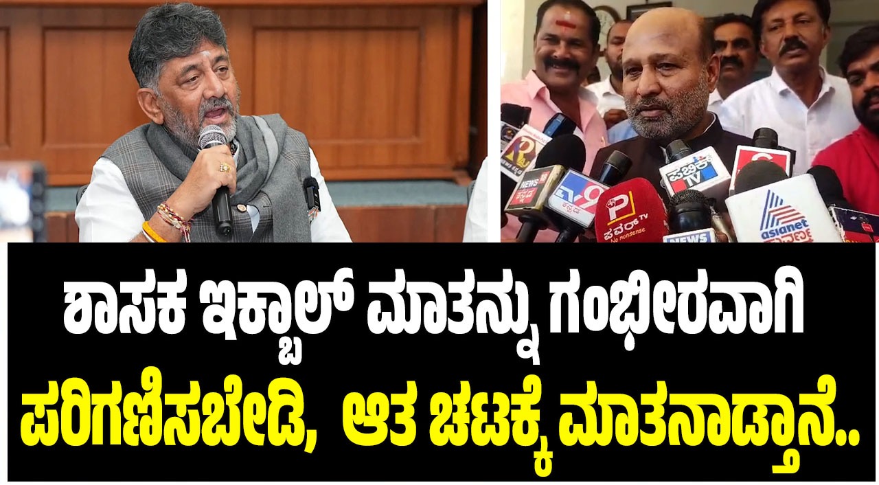 ಬೆಂಗಳೂರು : ಡಿಸೆಂಬರ್ ನಲ್ಲಿ ಡಿಕೆ ಶಿವಕುಮಾರ್ ಅವರು ಸಿಎಂ ಆಗುತ್ತಾರೆ ಎಂಬ ಶಾಸಕ ಇಕ್ಬಾಲ್ ಹುಸೇನ್ ಅವರ ಹೇಳಿಕೆಗೆ ಡಿಸಿಎಂ ಡಿಕೆಶಿ ಕೆಂಪೇಗೌಡ ವಿಮಾನ ನಿಲ್ದಾಣದಲ್ಲಿ ಮಾಧ್ಯಮಗಳಿಗೆ ಪ್ರತಿಕ್ರಿಯಿಸಿದ್ದಾರೆ. ಯಾರೂ ಶಾಸಕ ಇಕ್ಬಾಲ್ ಹುಸೇನ್ ಅವರ ಮಾತನ್ನು ಗಣನೆಗೆ ತೆಗೆದುಕೊಳ್ಳುವುದು ಬೇಡ. ಆತ ಚಟಕ್ಕೆ ಮಾತನಾಡುತ್ತಾನೆ” ಎಂದು ಸಿಡಿಮಿಡಿಗೊಂಡಿದ್ದಾರೆ.