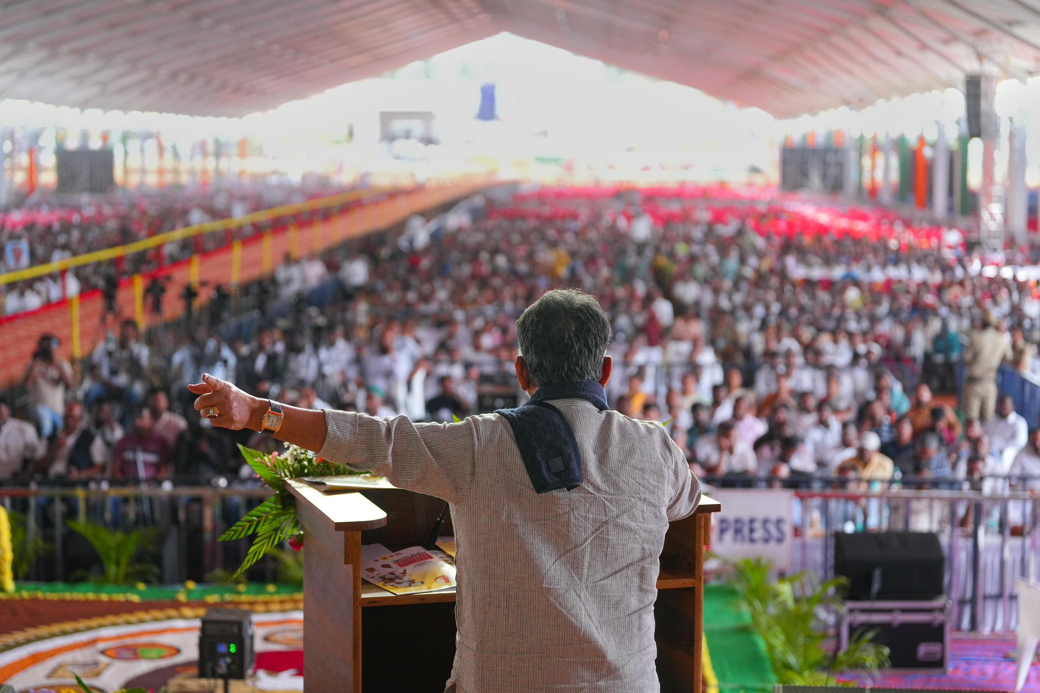“ನಾವು ಹುಟ್ಟುವಾಗ ಖಾಲಿ ಕೈಯಲ್ಲಿ ಬರುತ್ತೇವೆ. ಹೋಗುವಾಗ ಪಾಪ ಪುಣ್ಯಗಳೊಂದಿಗೆ ಹೋಗುತ್ತೇವೆ. ಅದೇ ರೀತಿ ನಮ್ಮ ಸರ್ಕಾರ ಪ್ರತಿ ಹಂತದಲ್ಲೂ ಸಾಕ್ಷಿಗುಡ್ಡೆ ಬಿಟ್ಟು ಹೋಗುತ್ತಿದೆ. ಚುನಾವಣೆ ಸಂದರ್ಭದಲ್ಲಿ ಬಂದಾಗ ನಾನು ಒಂದು ಮಾತು ಹೇಳಿದ್ದೆ. ಕಮಲ ಕೆರೆಯಲ್ಲಿದ್ದರೆ ಚೆಂದ, ತೆನೆ ಹೊಲದಲ್ಲಿದ್ದರೆ ಚೆಂದ, ದಾನ ಧರ್ಮ ಮಾಡುವ ಕೈ ಅಧಿಕಾರದಲ್ಲಿದ್ದರೆ ಚೆಂದ ಎಂದು. ಐದು ಬೆರಳು ಸೇರಿ ಕೈ ಮುಷ್ಟಿಯಾಯಿತು, ಐದು ಗ್ಯಾರಂಟಿ ಸೇರಿ ಕೈ ಗಟ್ಟಿಯಾಯಿತು. ನಾವು ಕೊಟ್ಟ ಮಾತಿನಂತೆ ನಡೆದಿದ್ದೇವೆ” ಎಂದರು.
