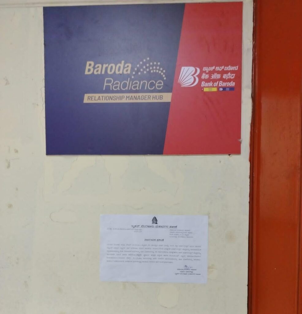 ಬ್ಯಾಂಕ್ ಆಫ್ ಬರೋಡಾ ಹಾಗೂ ಅಂಚೆ ಕಛೇರಿಯನ್ನು ಪಾಲಿಕೆಯ ಅಧಿಕಾರಿ ಮತ್ತು ಸಿಬ್ಬಂದಿ ಹಾಗೂ ಪೋಲೀಸ್ ಸಿಬ್ಬಂದಿ ಬಂದೋಬಸ್ತ್ ನೊಂದಿಗೆ ಬೀಗಮುದ್ರೆ ಹಾಕಲಾಗಿದೆ.