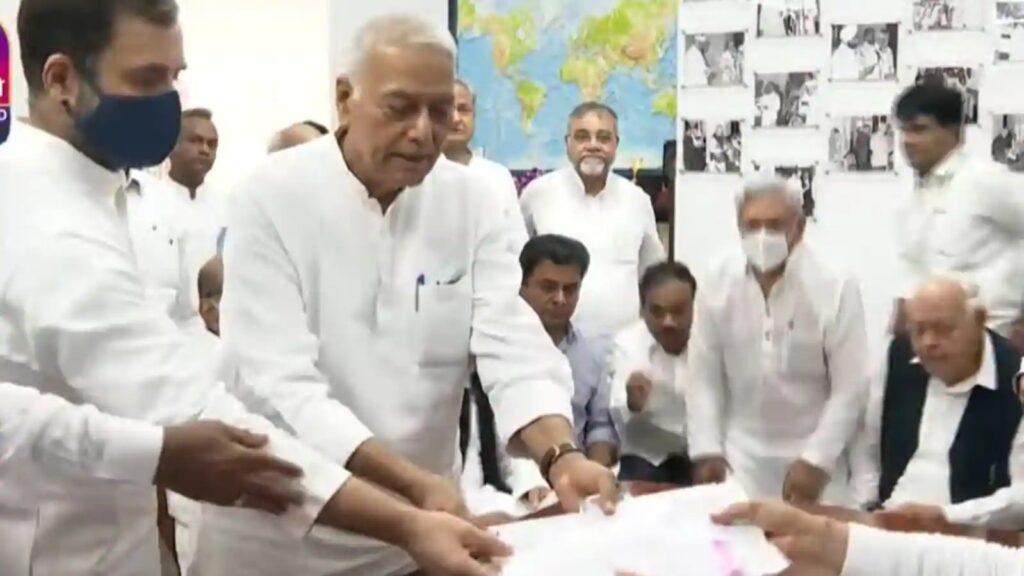 ರಾಹುಲ್ ಗಾಂಧಿ ಮತ್ತು ಶರದ್ ಪವಾರ್ ಸೇರಿದಂತೆ ಹಲವು ಪ್ರಮುಖ ವಿರೋಧ ಪಕ್ಷದ ನಾಯಕರ ಸಮ್ಮುಖದಲ್ಲಿ ಯಶವಂತ್ ಸಿನ್ಹಾ ಸೋಮವಾರ ನಾಮಪತ್ರ ಸಲ್ಲಿಸಿದರು.