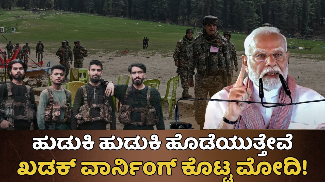 ಕಾಶ್ಮೀರದ ಪಹಲ್ಗಾಮ್ ದಾಳಿಕೋರರನ್ನ ಹುಡುಕಿ ಹುಡುಕಿ ಹೊಡೀತೀವಿ ಎಂದು ಉಗ್ರರು ಹಾಗು ಉಗ್ರ ಪೋಷಕರಿಗೆ ಪ್ರಧಾನಿ ನರೇಂದ್ರ ಮೋದಿ ನೇರ ಸಂದೇಶ ರವಾನೆ ಮಾಡಿದ್ದಾರೆ. ಪಾಕಿಸ್ತಾನದ ವಿರುದ್ಧ ಭಾರತದ ರಾಜತಾಂತ್ರಿಕ ಯುದ್ಧ ಶುರು ಎನ್ನುವ ಸಂದೇಶ ರವಾನಿಸಿದ್ದಾರೆ. ಬಿಹಾರದಲ್ಲಿ ನಡೆದ ಕಾರ್ಯಕ್ರಮದಲ್ಲಿ ಮಾತನಾಡಿದ ಪ್ರಧಾನಿ ನಮೋ ಪಾಕಿಸ್ತಾನಕ್ಕೆ ಖಡಕ್ ವಾರ್ನಿಂಗ್ ಕೊಟ್ಟಿದ್ದಾರೆ. ಉಗ್ರರು ಮತ್ತು ಉಗ್ರರ ಬೆನ್ನಿಗಿರುವವರಿಗೆ ಎಚ್ಚರಿಕೆ ಸಂದೇಶ ನೀಡಿದ್ದು, ಉಗ್ರರ ದಾಳಿಯಿಂದ ಮೃತಪಟ್ಟ ಕುಟುಂಬಗಳ ಜೊತೆಗೆ ಇಡೀ ದೇಶ ನಿಲ್ಲುತ್ತದೆ ಎಂದಿದ್ದಾರೆ.