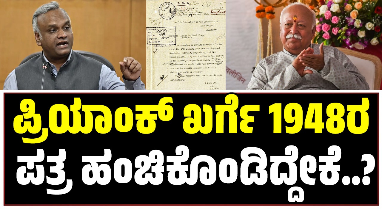 ಬೆಂಗಳೂರು: ರಾಷ್ಟ್ರೀಯ ಸ್ವಯಂ ಸೇವಕ ಸಂಘ (RSS) ವಿರುದ್ಧ ಸಚಿವ ಪ್ರಿಯಾಂಕ್ ಖರ್ಗೆ (Minister Priyank Kharge) ವಾಗ್ದಾಳಿ ಮುಂದುವರಿದಿದ್ದು, ನಮ್ಮ ರಾಷ್ಟ್ರಧ್ವಜಕ್ಕೆ ಅಗೌರವ ತೋರಿಸಿ 100 ವರ್ಷಗಳು ಎಂದು ಭಾರತ ಸರ್ಕಾರದ ಗೃಹ ಸಚಿವಾಲಯವು ಪಂಜಾಬ್ ಮುಖ್ಯ ಕಾರ್ಯದರ್ಶಿಗೆ 1948ರಲ್ಲಿ ಬರೆದ ಪತ್ರವನ್ನು ಹಂಚಿಕೊಂಡಿದ್ದಾರೆ.