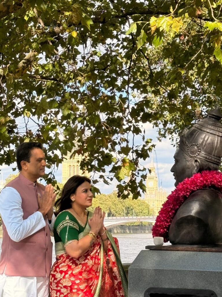 ಸ್ಯಾಂಡಲ್ವುಡ್ ನಟಿ, ಮಳೆ ಹುಡುಗಿ ಪೂಜಾ ಗಾಂಧಿ ಮತ್ತು ಪತಿ ವಿಜಯ್ ಘೋರ್ಪಡೆ ಇತ್ತೀಚೆಗೆ ತಮ್ಮ ವಿವಾಹದ ಬಳಿಕ ಲಂಡನ್ನಲ್ಲಿರುವ ಬಸವೇಶ್ವರ ಪುತ್ಥಳಿಗೆ ನಮಸ್ಕರಿಸಿ ಬಂದಿದ್ದಾರೆ.ಬಸವ ಸಮಿತಿ ಆಯೋಜಿಸಿದ್ದ ಕಾರ್ಯಕ್ರಮದಲ್ಲಿ ಪೂಜಾ ಗಾಂಧಿ ದಂಪತಿ ಭಾಗಹಿಸಿದ್ದಾರೆ. ಇದೇ ವೇಳೆ ಅಲ್ಲಿನ ಕನ್ನಡ ಸಂಘಗಳು ಈ ಜೋಡಿಯನ್ನು ಸನ್ಮಾನಿಸಿದೆ.
