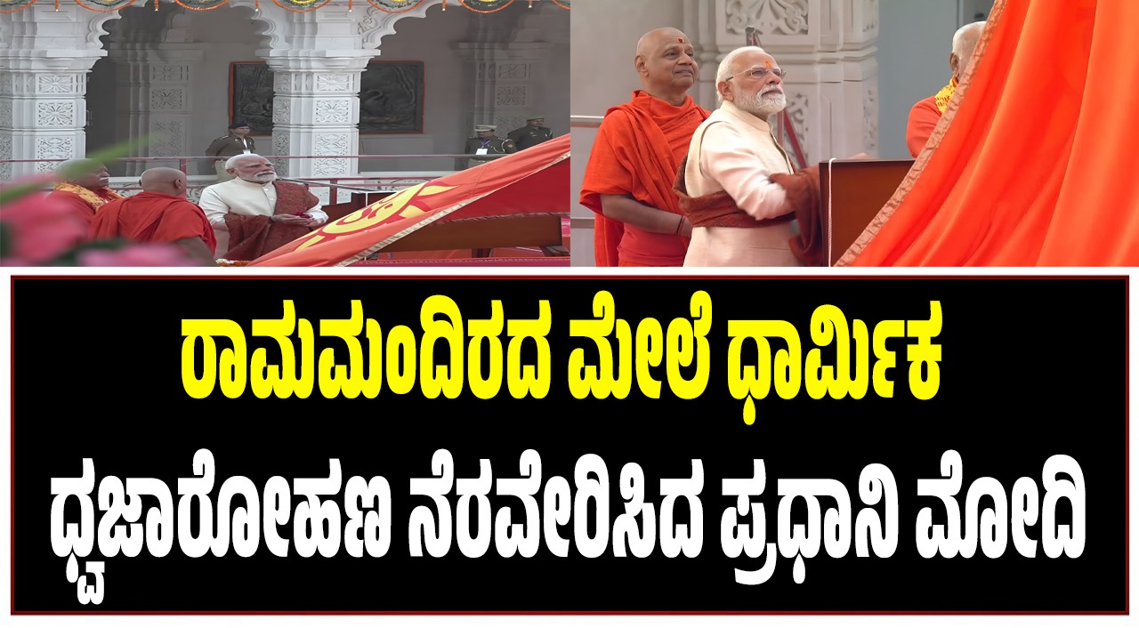ಇದೀಗ ರಾಮಮಂದಿರ ನಿರ್ಮಾಣ ಕಾರ್ಯ ಪೂರ್ಣಗೊಂಡಿದ್ದು, ಇಂದು ಪ್ರಧಾನಿ ಮೋದಿ ರಾಮಮಂದಿರ ಗೋಪುರ ಮೇಲೆ ಭಗವಾ ಧ್ವಜಾರೋಹಣ ನೆರವೇರಿಸಿದ್ದಾರೆ. ರಾಮಮಂದಿರ ಗೋಪುರ ಮೇಲೆ 22 ಅಡಿ ಎತ್ತರದ ಭಗವಾ ಧ್ವಜಾರೋಹಣ ಮಾಡಲಾಗಿದೆ. ಈ ಮೂಲಕ ಅಯೋಧ್ಯೆ ಮತ್ತೊಂದು ಐತಿಹಾಸಿಕ ಕ್ಷಣಕ್ಕೆ ಸಾಕ್ಷಿಯಾಗಿದೆ.