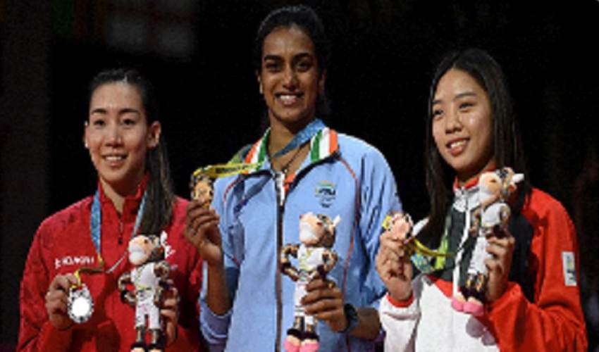ಭಾರತದ ನಂ.1 ಆಟಗಾರ್ತಿ ಪಿವಿ ಸಿಂಧು ಮಹಿಳೆಯರ ಸಿಂಗಲ್ಸ್‌ ಫೈನಲ್‌ ನಲ್ಲಿ 21-15, 21-13 ನೇರ ಸೆಟ್‌ ಗಳಿಂದ ಕೆನಡಾದ ಮಿಚೆಲ್‌ ಲೀ ವಿರುದ್ಧ ಸುಲಭ ಜಯ ಸಾಧಿಸಿ ಸ್ವರ್ಣ ಪದಕಕ್ಕೆ ಮುತ್ತಿಕ್ಕಿದರು.