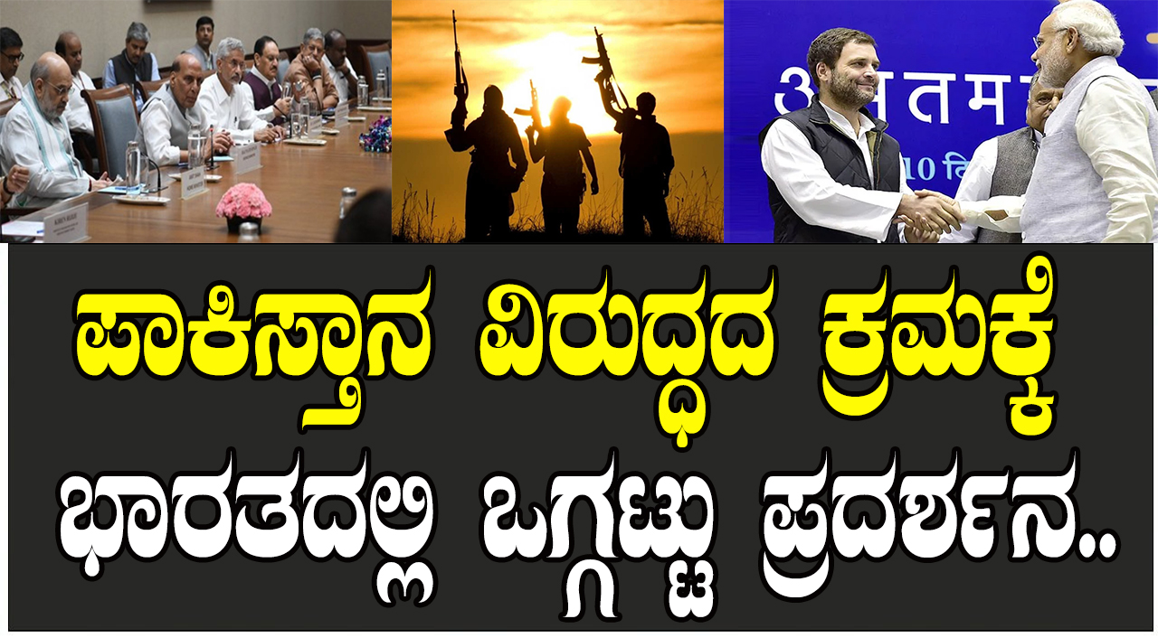 ಭಾರತ ಭಯೋತ್ಪಾದನೆ ವಿರುದ್ಧ ಹೋರಾಟ ಮಾಡುವ ಮುನ್ನ ಕೇಂದ್ರ ಸರ್ಕಾರ ಆಲ್ ಪಾರ್ಟಿ ಮೀಟಿಂಗ್ ಆಯೋಜನೆ ಮಾಡಿತ್ತು. ರಕ್ಷಣಾ ಸಚಿವ ರಾಜನಾಥ್ ಸಿಂಗ್ ನೇತೃತ್ವದಲ್ಲಿ ಸಂಸತ್ ಭವನದಲ್ಲಿ ನಡೆದ ಸಭೆಗೆ ಲೋಕಸಭಾ ವಿರೋಧ ಪಕ್ಷದ ನಾಯಕ ರಾಹುಲ್ ಗಾಂಧಿ, ರಾಜ್ಯಸಭಾ ವಿರೋಧ ಪಕ್ಷದ ನಾಯಕ ಮಲ್ಲಿಕಾರ್ಜುಕ ಖರ್ಗೆ ಸೇರಿದಂತೆ ಎನ್ಸಿಪಿ, ಶಿವಸೇನೆ, ಡಿಎಂಕೆ, ಟಿಎಂಸಿ ಸೇರಿದಂತೆ ಸಾಕಷ್ಟು ಪಕ್ಷಗಳ ಮುಖಂಡರು ಹಾಜರಿದ್ದರು. ಈ ವೇಳೆ ಭಯೋತ್ಪಾದಕರ ಮಟ್ಟ ಹಾಕಲು ಕೇಂದ್ರ ಸರ್ಕಾರ ತೆಗೆದುಕೊಳ್ಳುವ ಯಾವುದೇ ನಿರ್ಧಾರಕ್ಕೆ ನಾವು ಬದ್ಧ ಎನ್ನುವ ಒಗ್ಗಟ್ಟಿನ ಮಂತ್ರ ಪಠಣ ಆಗಿದೆ ಎನ್ನಲಾಗಿದೆ.