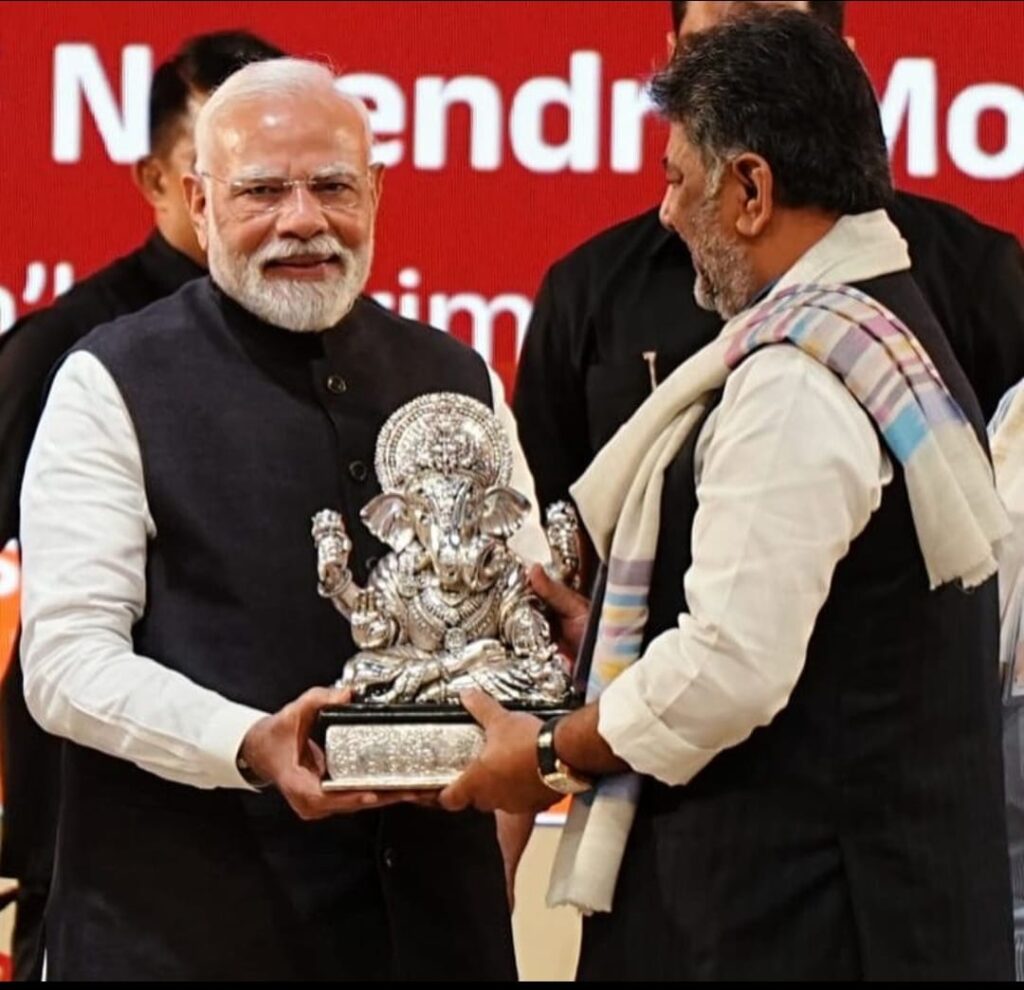 ಬೆಂಗಳೂರಿನ ಆರ್ ವಿ ರಸ್ತೆ ಮತ್ತು ಬೊಮ್ಮಸಂದ್ರ ನಡುವಣ ಮೆಟ್ರೋ ಹಳದಿ ಮಾರ್ಗ ಉದ್ಘಾಟನೆ ಸಮಾರಂಭದಲ್ಲಿ ಪ್ರಧಾನಿ ಮೋದಿ ಅವರಿಗೆ ಅಭಿನಂದನೆ ಪೂರ್ವಕವಾಗಿ ನೀಡಿದ ಬೆಳ್ಳಿ ಗಣೇಶ ಪ್ರತಿಮೆ ತಮ್ಮ ಸ್ವಂತದ್ದು ಎಂದು ಡಿಸಿಎಂ ಡಿ ಕೆ ಶಿವಕುಮಾರ್ ಅವರು ಸ್ಪಷ್ಟಪಡಿಸಿದ್ದಾರೆ.