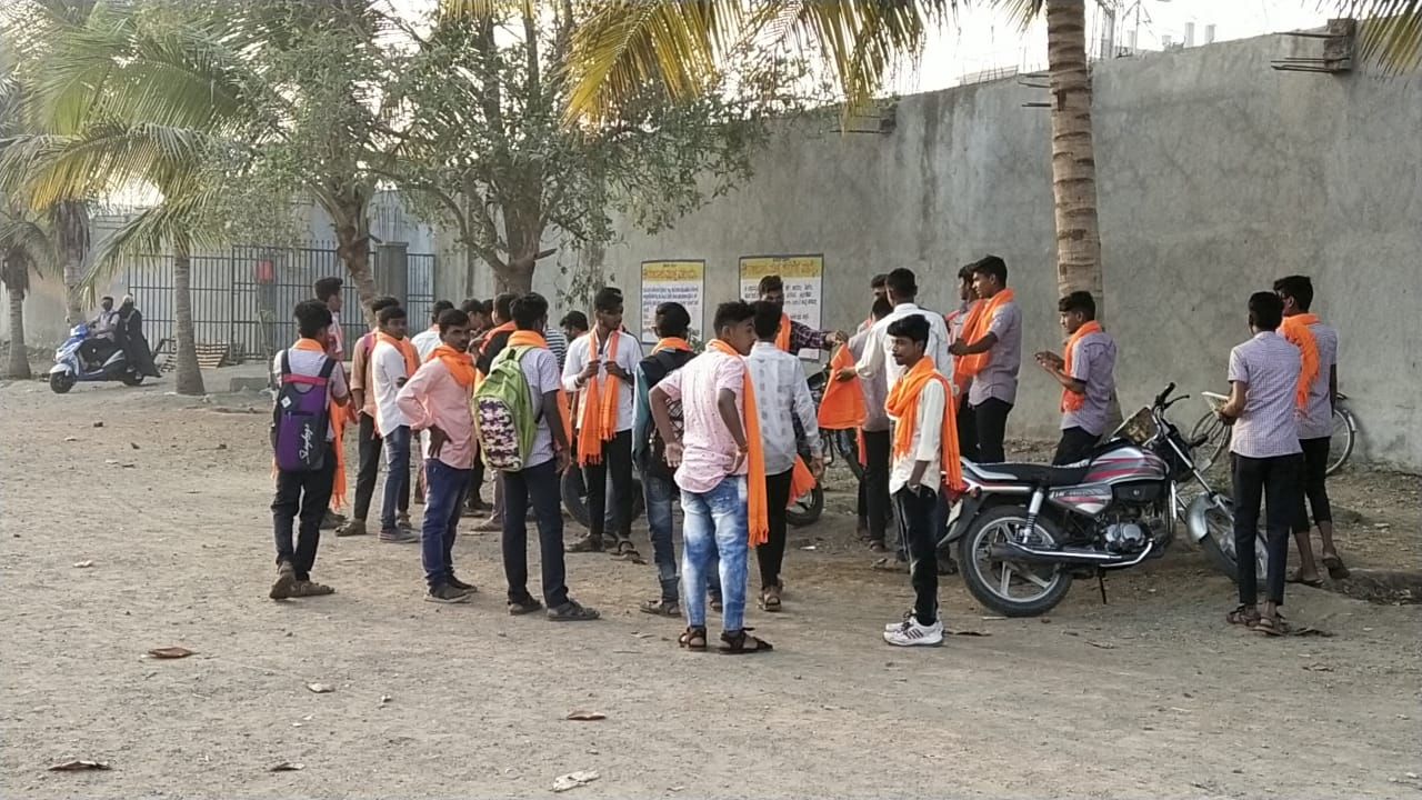 ಅವರು ಹಿಜಾಬ್ ಧರಿಸಿದರೆ ನಾವು ಕೆಸರಿ ಶಾಲ ಧರಿಸುತ್ತೆವೆ ಎಂದು ಜೈ ಶ್ರೀರಾಮ ಘೋಷಣೆ ಕೂಗುತ್ತ ಕಾಲೇಜು ಆವರಣದಲ್ಲೇ ವಿದ್ಯಾರ್ಥಿಳು ಧರಣಿ ಕುಳಿತಿದ್ದಾರೆ.