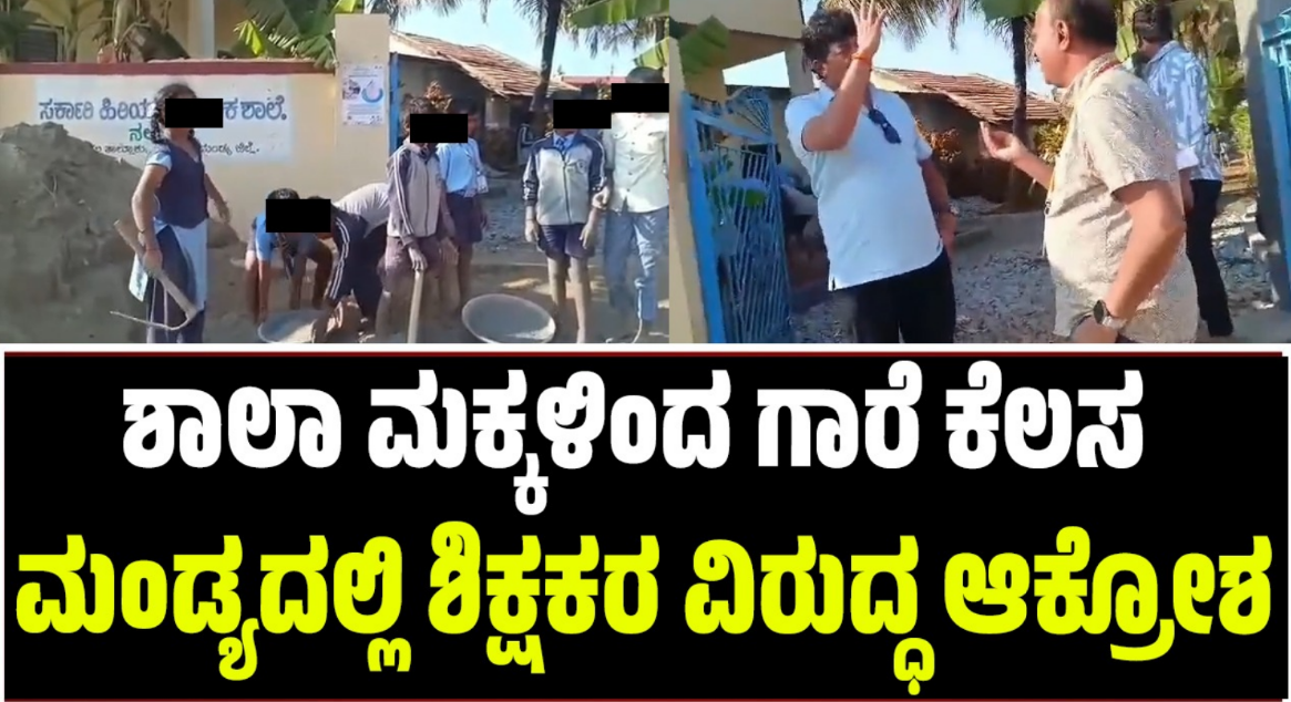 ಶಾಲಾ ಮಕ್ಕಳಿಂದ ಗಾರೆ ಕೆಲಸ: ಮಂಡ್ಯದಲ್ಲಿ ಶಿಕ್ಷಕರ ವಿರುದ್ಧ ಆಕ್ರೋಶ