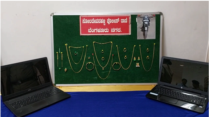 ಸೋಲದೇವನಹಳ್ಳಿ ಪೊಲೀಸ್ರಿಂದ ಶೋಯಬ್ ಪಾಷಾ ಅಲಿಯಾಸ್ ತುರುಕಾ ಬಾಬು ಬಂಧಿತ ಆರೋಪಿ, ರಾತ್ರಿ ವೇಳೆ ಟಿವಿಎಸ್ ಅಪ್ಪಾಚೇ ಬೈಕ್ ನಲ್ಲಿ ಸುತ್ತಾಡ್ತ ಬೀಗ ಹಾಕಿದ ಮನೆಗಳ ರೆಕ್ಕಿ ಮಾಡ್ತಿದ್ದ, ಬೀಗ ಹಾಕಿರೋ ಮನೆಗಳು ಕಣ್ಣಿಗೆ ಬೀಳ್ತಿದ್ದಂತೆ ಕ್ಷಣಾರ್ಧದಲ್ಲಿ ಬೀಗ ಹೊಡೆದು ಚಿನ್ನಾಭರಣ ಕಳವು ಮಾಡ್ತಿದ್ದ ಸದ್ಯ ಬಂಧಿತ ಆರೋಪಿಯನ್ನ ಬಂಧಿಸಿ ತನಿಖೆ ನಡೆಸ್ತಿರೋ ಸೋಲದೇವನಹಳ್ಳಿ ಪೊಲೀಸ್ರು ಆರೋಪಿ ಬಂಧನದಿಂದ ಐದು ಮನೆ ಕಳವು ಪ್ರಕರಣಗಳು ಪತ್ತೆ ಬಂಧಿತನಿಂದ 101 ಗ್ರಾಂ ತೂಕದ ಚಿನ್ನಾಭರಣ, ಒಂದು ಬೈಕ್, ಎರಡು ಲ್ಯಾಪ್ ಟಾಪ್ ಗಳ ವಶ..