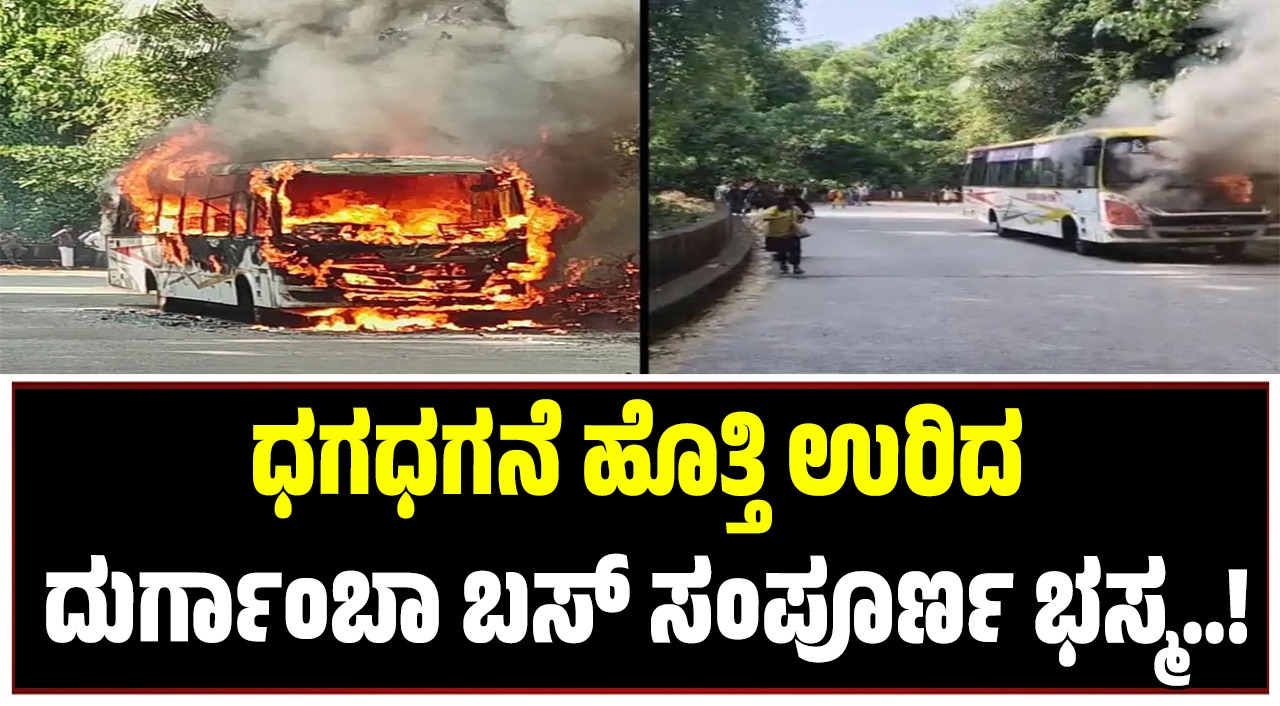 ಧಗಧಗನೆ ಹೊತ್ತಿ ಉರಿದ ದುರ್ಗಾಂಬಾ ಬಸ್ ಸಂಪೂರ್ಣ ಭಸ್ಮ!