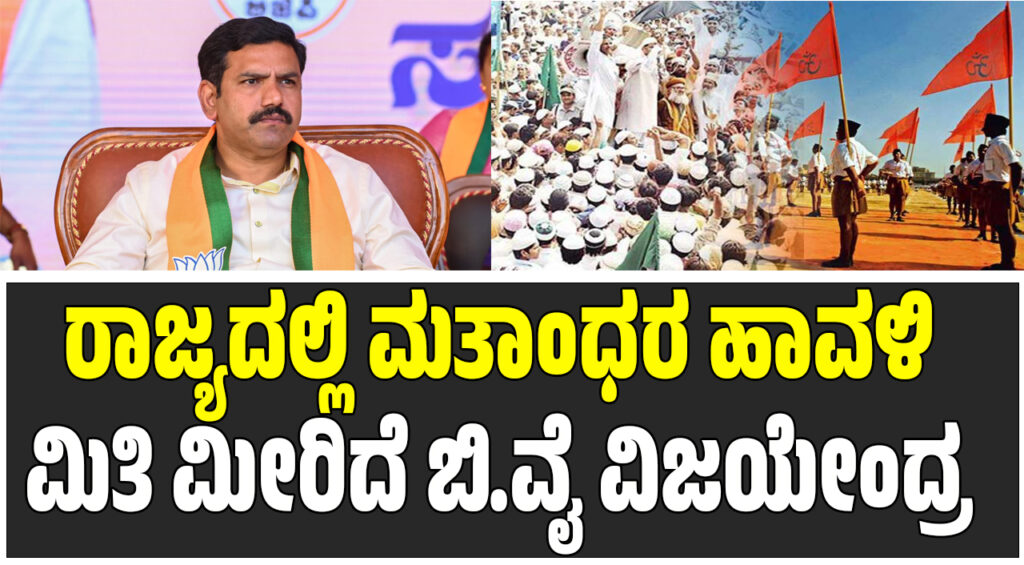 ರಾಜ್ಯದಲ್ಲಿ ಕಾಂಗ್ರೆಸ್ ಸರ್ಕಾರ (Congress government) ಅಧಿಕಾರಕ್ಕೆ ಬಂದ ನಂತರ ಹಿಂದೂ ಹಬ್ಬಗಳು, ಗಣಪತಿ ಉತ್ಸವ ಹಾಗೂ ಮೆರವಣಿಗೆಗಳನ್ನು ನೆಮ್ಮದಿಯಾಗಿ ಆಚರಿಸಲಾಗದ ಪರಿಸ್ಥಿತಿ ರಾಜ್ಯದಲ್ಲಿ ನಿರ್ಮಾಣವಾಗಿದೆ. ಗಣೇಶ ವಿಸರ್ಜನೆಯ (Ganesha procession) ಮೆರವಣಿಗೆಯ ಸಂದರ್ಭದಲ್ಲಂತೂ ಮತಾಂಧ ಪುಂಡರು ಗುಂಪು ಕಟ್ಟಿಕೊಂಡು ಕಲ್ಲು ತೂರುವ ಘಟನೆ ಮಂಡ್ಯ, ಧಾರವಾಡ, ಬಾಗಲಕೋಟೆ, ಹುಬ್ಬಳ್ಳಿ ಸೇರಿದಂತೆ ರಾಜ್ಯದ ಅನೇಕ ಭಾಗಗಳಿಂದ ವರದಿಯಾಗುತ್ತಿದೆ ಎಂದು ಬಿಜೆಪಿ ರಾಜ್ಯಾಧ್ಯಕ್ಷ ಬಿ ವೈ ವಿಜಯೇಂದ್ರ (BY Vijayendra) ಆರೋಪಿಸಿದ್ದಾರೆ.
