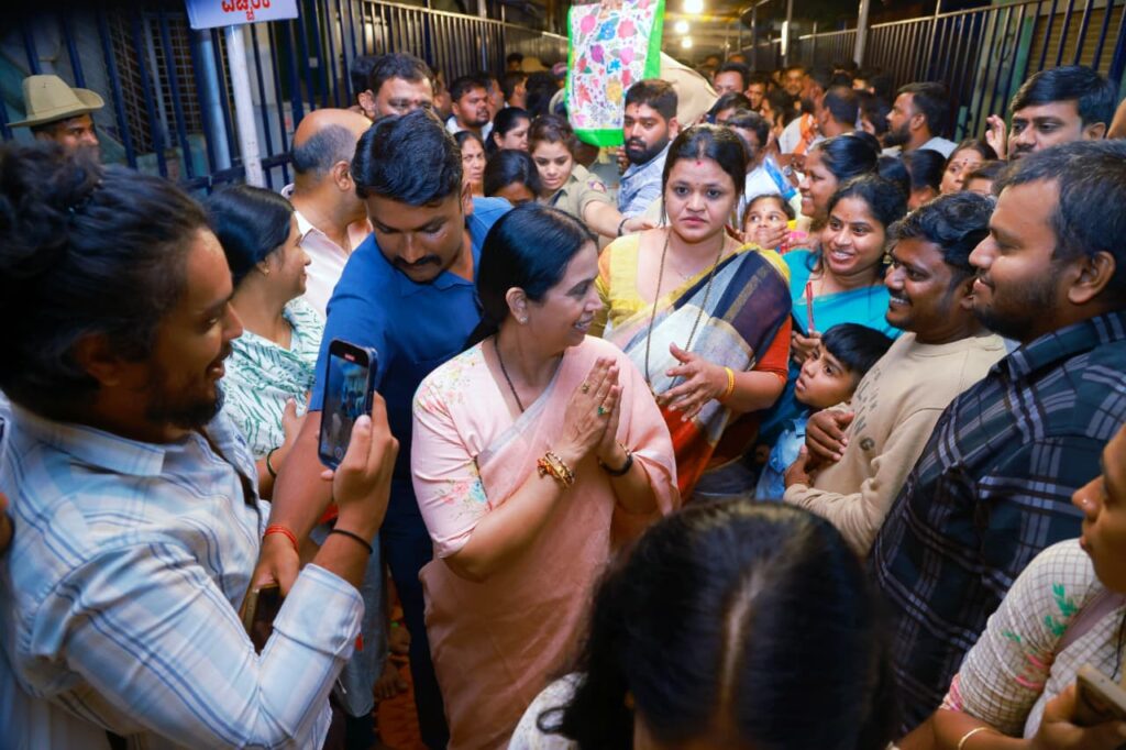 - ಮಹಿಳಾ ಮತ್ತು ಮಕ್ಕಳ ಅಭಿವೃದ್ಧಿ ಇಲಾಖೆ ಸಚಿವೆ ಲಕ್ಷ್ಮೀ ಹೆಬ್ಬಾಳಕರ್ ಅವರು ಹಾಸನಾಂಬೆ ದರ್ಶನ ಉತ್ಸವದಲ್ಲಿ ಸಾಮಾನ್ಯ ಭಕ್ತರಂತೆ ಸರಳತೆಯನ್ನು ಮೆರೆದಿದ್ದಾರೆ. ಅವರು ಸ್ವತಃ ಸಾವಿರ ರೂಪಾಯಿ ಟಿಕೆಟ್ ಖರೀದಿಸಿ, ಸಾಮಾನ್ಯ ಭಕ್ತರೊಟ್ಟಿಗೆ ಸರತಿ ಸಾಲಿನಲ್ಲಿ ನಿಂತು ದೇವಿಯ ದರ್ಶನ ಪಡೆದರು.
