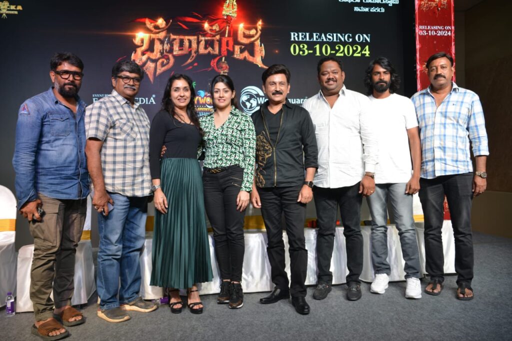 ಶಮಿಕ ಎಂಟರ್ ಪ್ರೈಸಸ್ ಲಾಂಛನದಲ್ಲಿ ರಾಧಿಕಾ ಕುಮಾರಸ್ವಾಮಿ ನಿರ್ಮಿಸಿ, ನಾಯಕಿಯಾಗೂ ನಟಿಸಿರುವ ಬಹು ನಿರೀಕ್ಷಿತ “ಭೈರಾದೇವಿ” ಸಿನಿಮಾ ಅಕ್ಟೋಬರ್ 3 ರಂದು ರಾಜ್ಯಾದ್ಯಂತ ಬಿಡುಗಡೆಯಾಗುತ್ತಿದೆ. ಬಿಡುಗಡೆಗೂ ಮುನ್ನ ಆಯೋಜಿಸಲಾಗಿದ್ದ ಪತ್ರಿಕಾಗೋಷ್ಠಿಯಲ್ಲಿ ಚಿತ್ರತಂಡದ ಸದಸ್ಯರು ಮಾತನಾಡಿದರು.