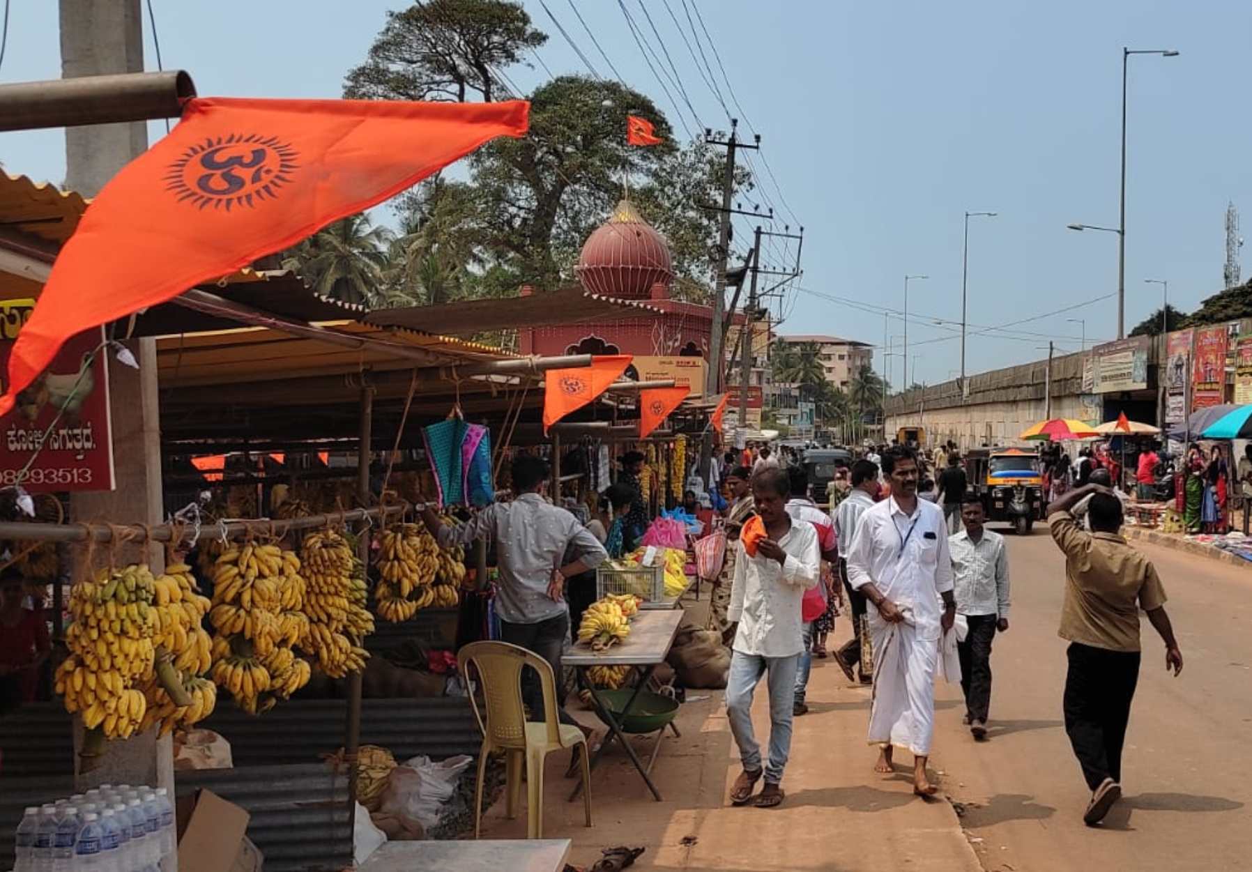 ದೇವಸ್ಥಾನ ಆವರಣದಲ್ಲಿ ಹೆಚ್ಚಾಗಿ ಇಲ್ಲಿ ಮುಸ್ಲಿಮರು ಕುರಿ-ಕೋಳಿ ಮಾರಾಟ ಮಾಡಲು ಬರುತ್ತಾರೆ. ತಾಯಿಗೆ ಕುರಿ ಮತ್ತು ಕೋಳಿಯನ್ನು ಅರ್ಪಿಸುವುದೇ ಮಾರಿ ಪೂಜೆಯ ಪ್ರಧಾನ ಆಚರಣೆ. ಆದರೆ ಈ ವರ್ಷ ಸಂಪೂರ್ಣ ಬದಲಾಗಿದ್ದು, ಮುಸ್ಲಿಮರ ಬದಲಾಗಿ ಹಿಂದೂ ವ್ಯಾಪಾರಿಗಳೇ ಕೋಳಿ ಮಾರಾಟ ಮಳಿಗೆ, ಹೂ ಹಣ್ಣು ಅಂಗಡಿಗಳನ್ನು ತೆರೆದಿದ್ದರು. ಎಲ್ಲ ಮಳಿಗೆಗಳಿಗೂ ಕೇಸರಿ ಧ್ವಜಗಳನ್ನು ಹಾಕಲಾಗಿತ್ತು.