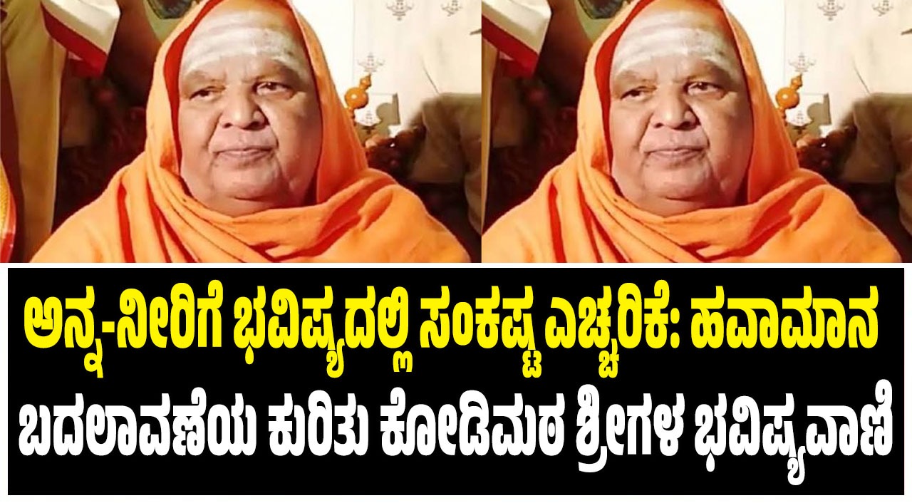ಹವಾಮಾನ ವೈಪರಿತ್ಯಗಳು ಮತ್ತು ಹವಾಮಾನ ಬದಲಾವಣೆಗಳ ಬಗ್ಗೆ ಮುನ್ಸೂಚನೆ ನೀಡುತ್ತಾ ಬಂದಿರುವ ಅರಸೀಕೆರೆ ಶ್ರೀ ಕೋಡಿಮಠ ಮಹಾಸಂಸ್ಥಾನದ ಶಿವಾನಂದ ಶಿವಯೋಗಿ ರಾಜೇಂದ್ರ ಸ್ವಾಮೀಜಿ ಅವರು ಇದೀಗ ಮತ್ತೊಂದು ಗಂಭೀರ ಎಚ್ಚರಿಕೆ ನೀಡಿದ್ದಾರೆ.ಮುಂದಿನ ದಿನಗಳಲ್ಲಿ ದೇಶದಲ್ಲಿ ಅನ್ನ ಹಾಗೂ ಕುಡಿಯುವ ನೀರಿನ ಕೊರತೆ ಎದುರಾಗುವ ಸಾಧ್ಯತೆ ಇದೆ ಎಂದು ಅವರು ಹೇಳಿದ್ದಾರೆ.