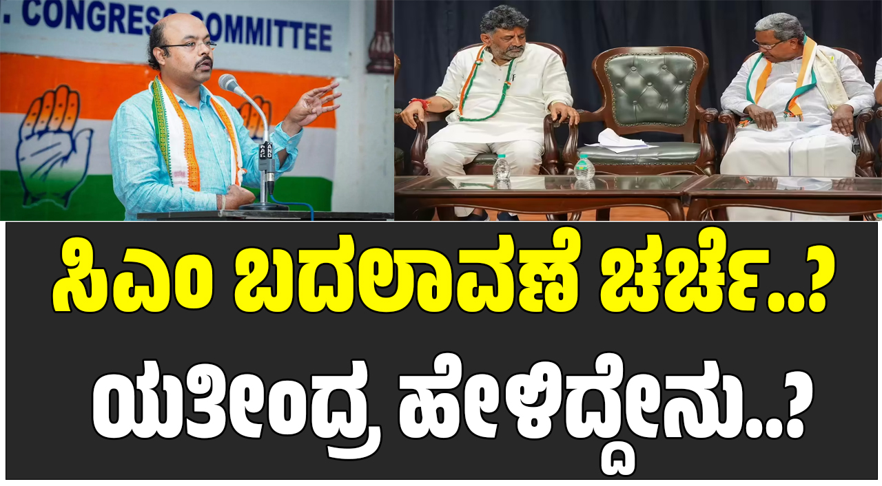 ಮೈಸೂರಿನಲ್ಲಿ ಮಾತನಾಡಿದ ಸಿಎಂ ಬದಲಾವಣೆ ಚರ್ಚೆ ಬಗ್ಗೆ ಪ್ರತಿಕ್ರಿಯಿಸಿದ ಯತೀಂದ್ರ, ಪಕ್ಷದ ವಿಚಾರಗಳನ್ನ ಸಾರ್ವಜನಿಕರವಾಗಿ ಚರ್ಚಿಸಲು ಸಾಧ್ಯವಿಲ್ಲ. ಯಾರೇ ಏನೇ ಮಾತನಾಡಿದರು ಅದನ್ನ ನಾನು ಮಾತಾಡಲ್ಲ. ಸಿಎಂ ಆಗಲಿ ಬೇರೆಯವರಾಗಲಿ ಸಿಎಂ ಸ್ಥಾನದ ಹಂಚಿಕೆ ಬಗ್ಗೆ ಯಾರು ನನ್ನ ಬಳಿ ಮಾತಾಡಿಲ್ಲ.
